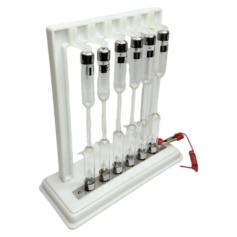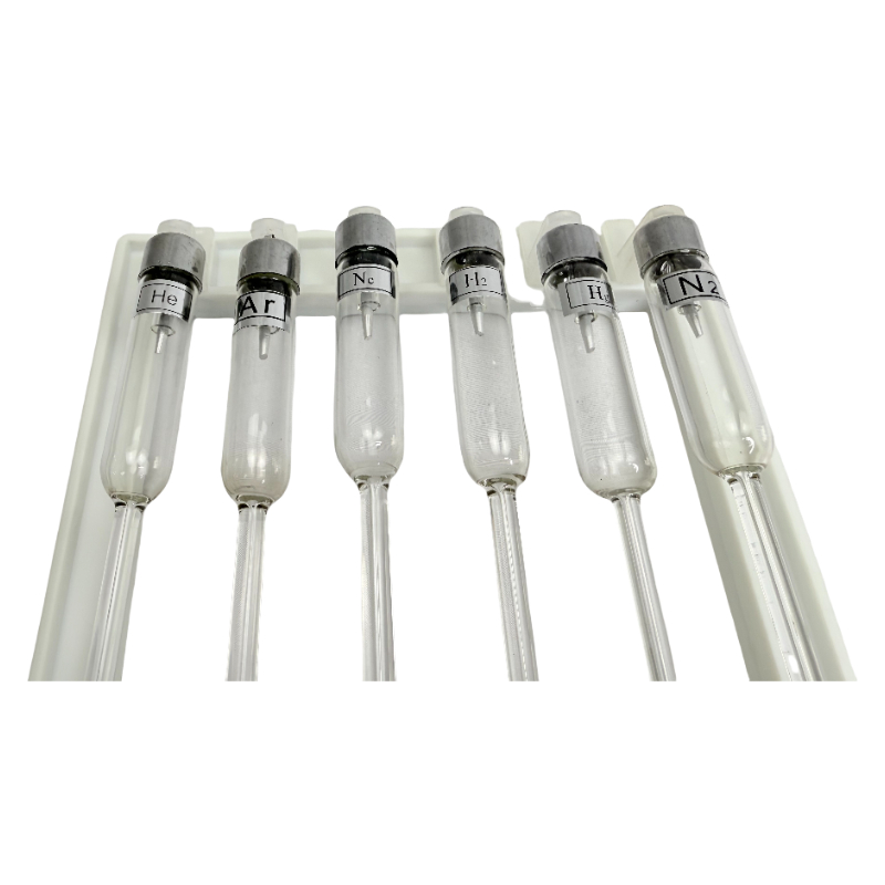 The spectral tube set includes six straight spectral tubes, which are filled with hydrogen, helium, mercury, neon, argon and other gases.